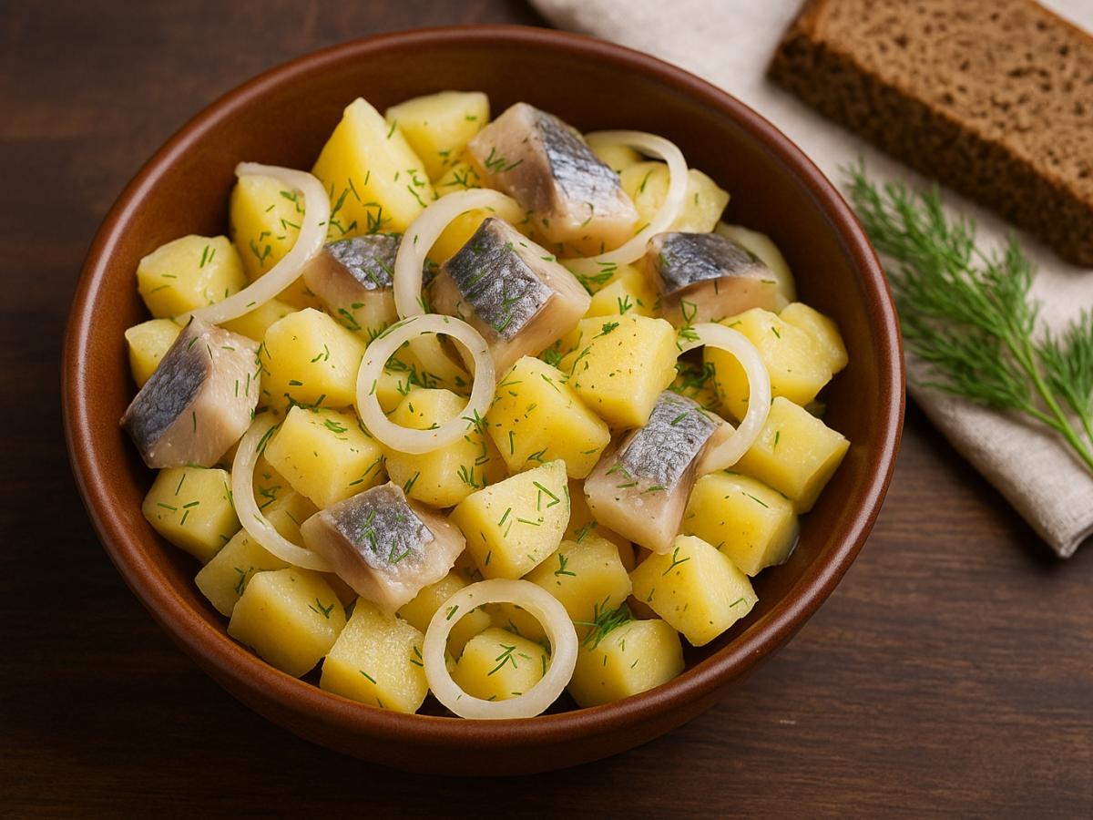 Северные блюда всегда создавались с одной целью — согреть и насытить. Этот салат делает именно это: