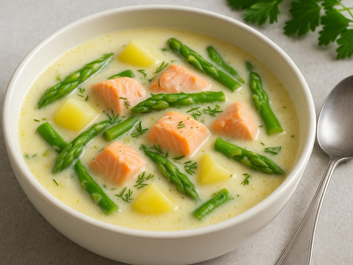 Этот суп давно стал визитной карточкой скандинавской кухни, но приготовить его можно и дома — просто, быстро и без особых кулинарных хитростей. Главное — сохранить природный вкус ингредиентов: нежность лосося и хрустящую текстуру спаржи.
