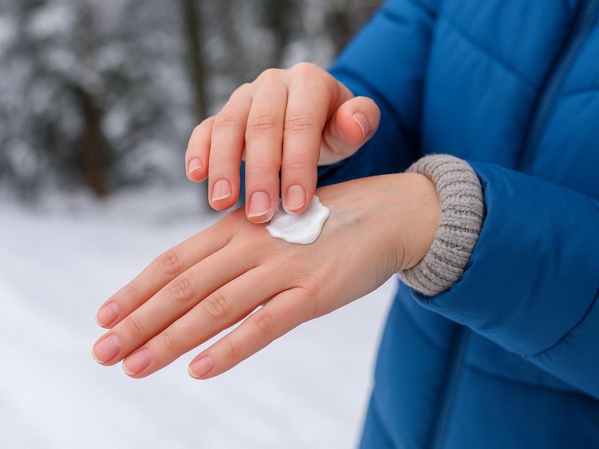 Перед выходом на улицу наноси крем или бальзам, особенно если температура ниже +5 °C. Он создаёт невидимую защитную плёнку, удерживающую влагу. Перчатки из натуральных материалов — шерсти, хлопка или кашемира — помогают коже дышать и предотвращают переохлаждение.