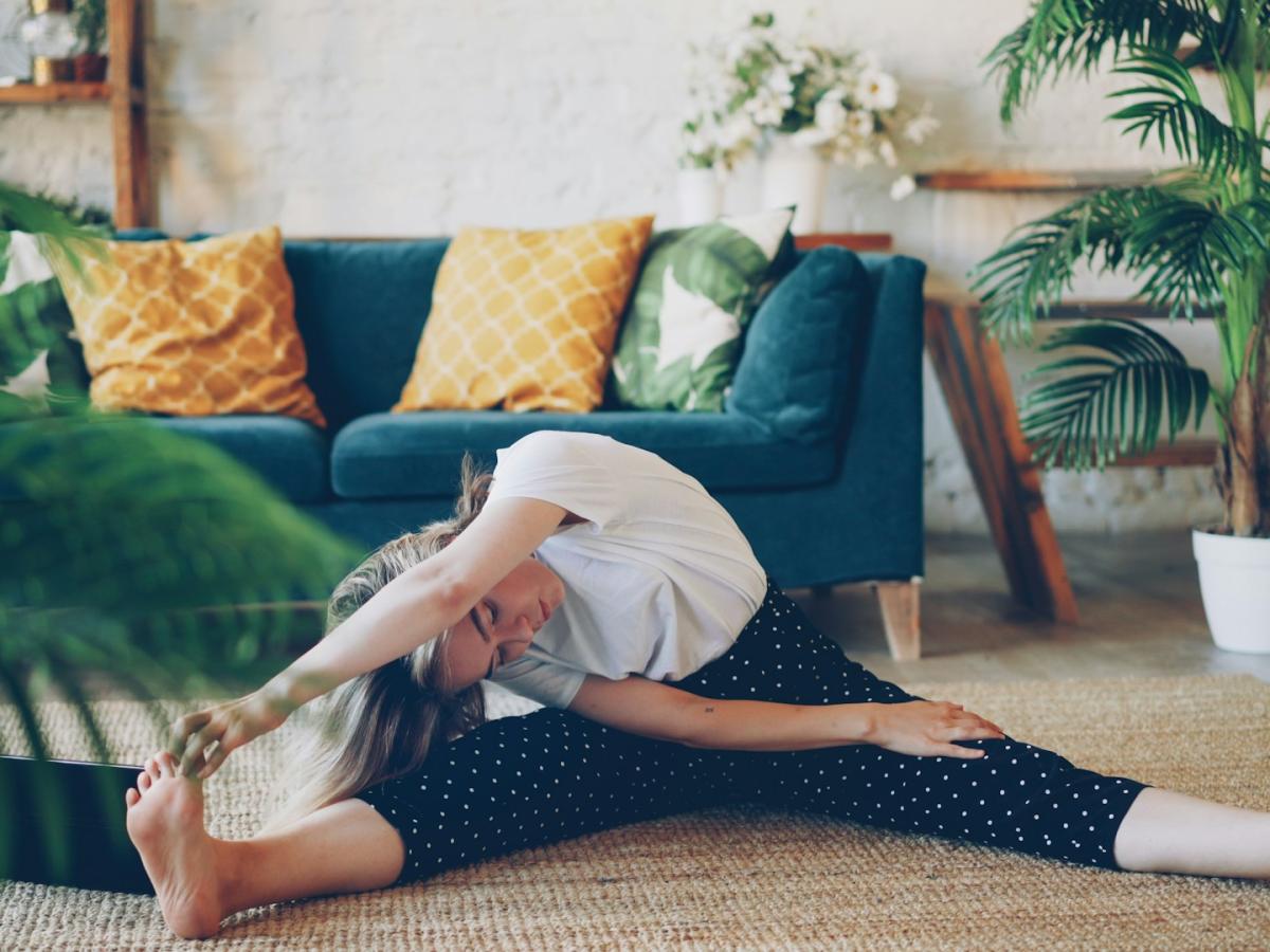 для растяжки — коврик, резинки и йога-блоки.
