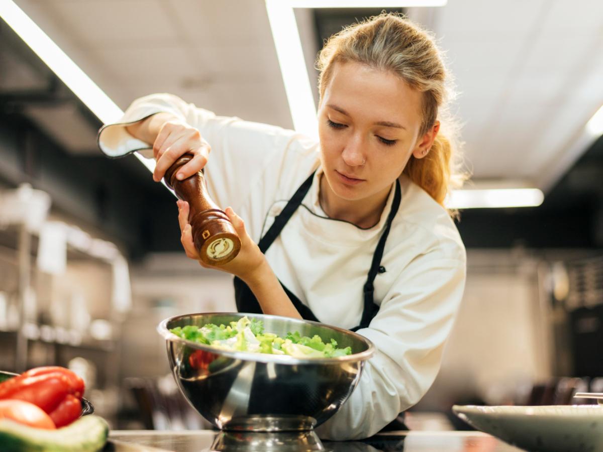 При создании блюда важно сохранять чёткую нарезку, одинаковую плотность ингредиентов и корректные пропорции, иначе салат может потерять фирменный акцент. Отдельной деталью становится подача: красная икра и проростки добавляют праздничности и объёма, гармонично завершая общую композицию.