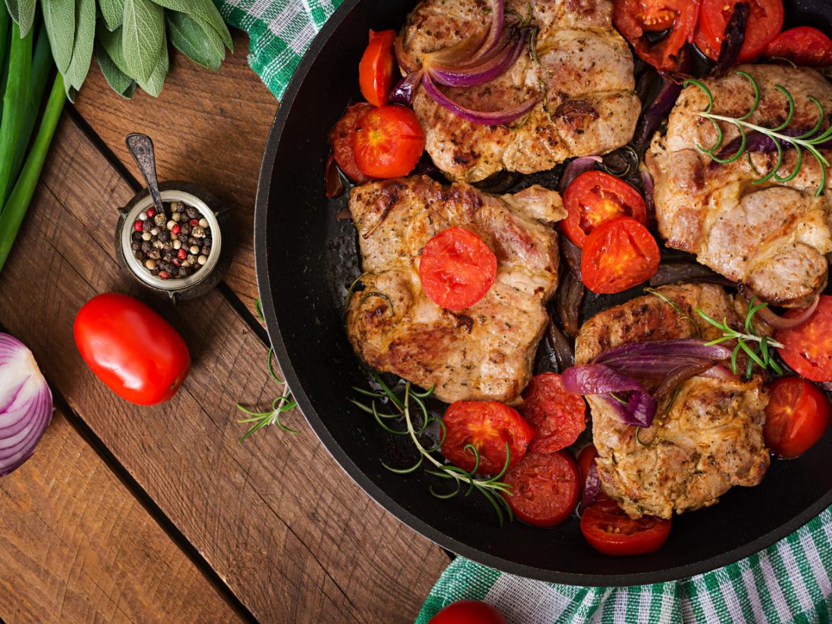 После маринования отбивные быстро обжаривают на сковороде — примерно по пять минут с каждой стороны. Этот этап отвечает за корочку и аромат. Высокая температура "запечатывает" соки внутри, не давая мясу пересохнуть.