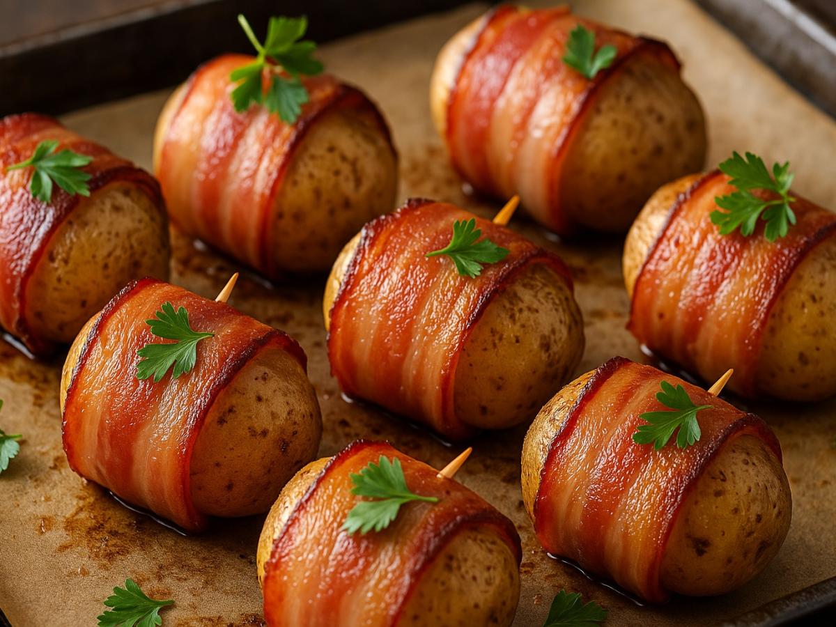 Картошка в беконе — универсальный рецепт: её подают как самостоятельную закуску, гарнир или праздничный акцент. Готовить просто, результат всегда эффектный. Главное — правильно запечь, чтобы бекон стал золотистым, а картошка сохранила нежность.