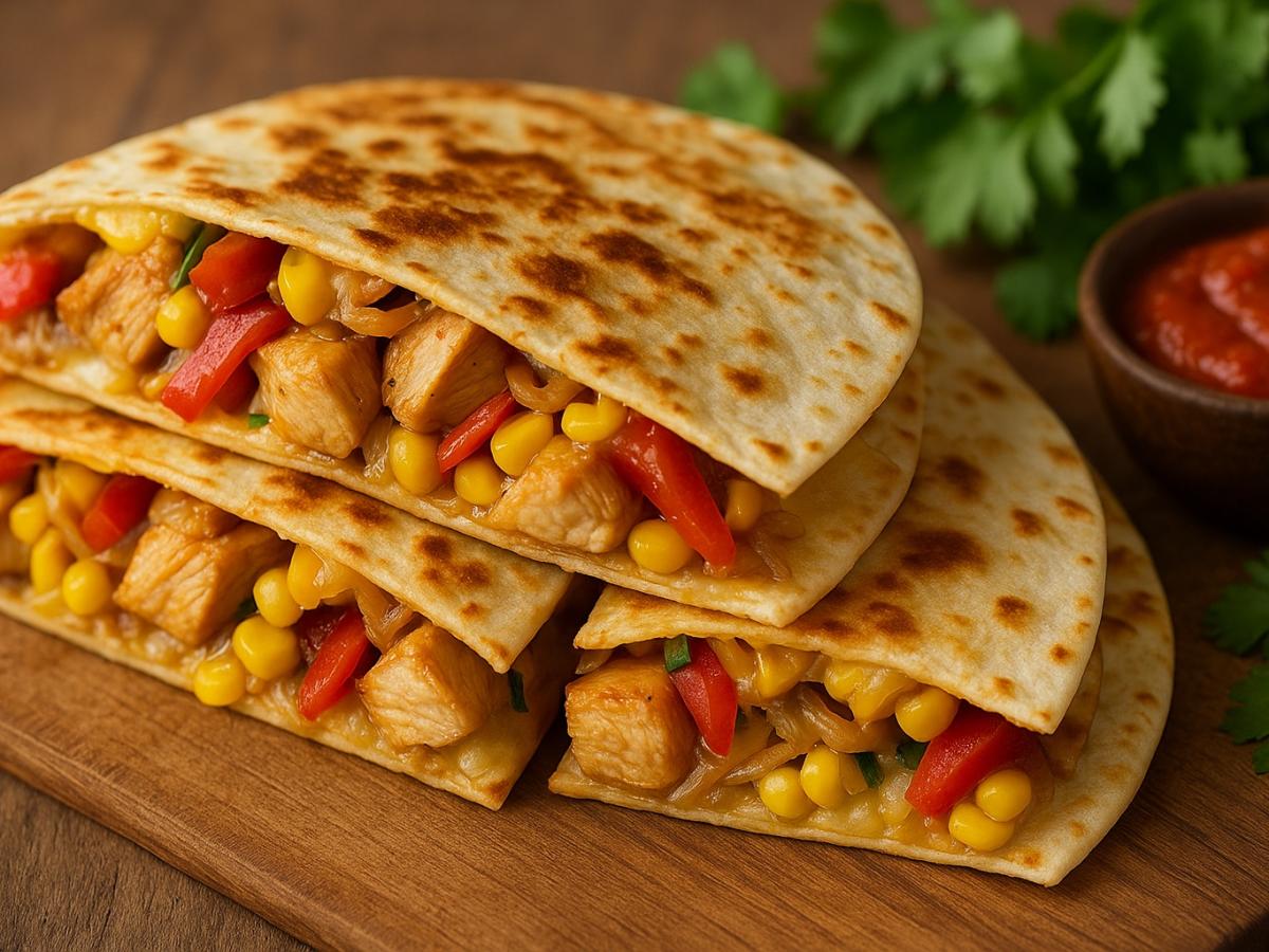 Кесадилья — одно из тех блюд, которые невозможно не полюбить. Тёплая тортилья, расплавленный сыр, нежная курица и аромат овощей создают идеальное сочетание текстур и вкусов.