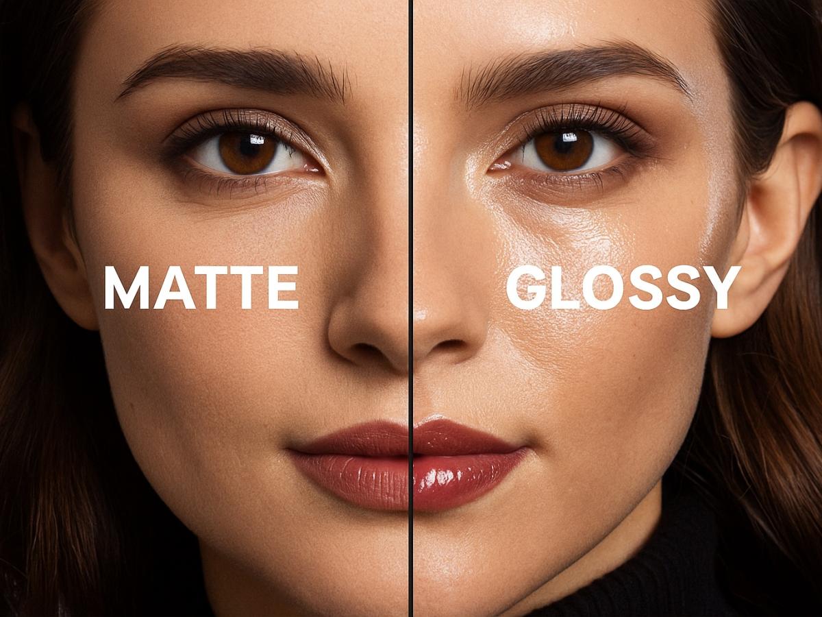 В макияже дуэт матового и глянцевого особенно выразителен. Тренд последних сезонов — "soft matte skin": кожа выглядит ухоженной, но без жирного блеска. На этом фоне глянцевые губы или влажные веки становятся главным акцентом. Новые гибридные формулы позволяют сочетать противоположности: матовую пудру и кремовый хайлайтер, блеск с бархатной помадой.