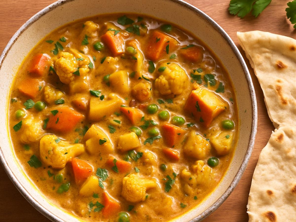 Карри с овощами — универсальное блюдо, которое сочетает богатый вкус и лёгкость. Несмотря на отсутствие мяса, оно получается сытным и многослойным по вкусу благодаря сочетанию специй, сливочной текстуры и свежих ингредиентов.