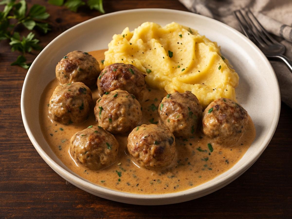 Сметанная подливка превращает обычные мясные шарики в нежное и сочное блюдо, а аромат, который заполняет кухню во время приготовления, вызывает то самое ощущение тепла и уюта.